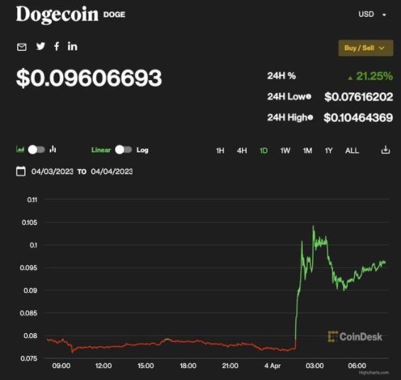 加密貨幣狗狗幣價(jià)格一度飆升超過(guò) 30%,現漲 21.25%。此前推特 CEO 埃隆·馬斯克將公司網(wǎng)站上標志性的“小藍鳥(niǎo)”換成了“柴犬”卡通形象。 ?。?a href="http://www.021kan.com">碼上科技)