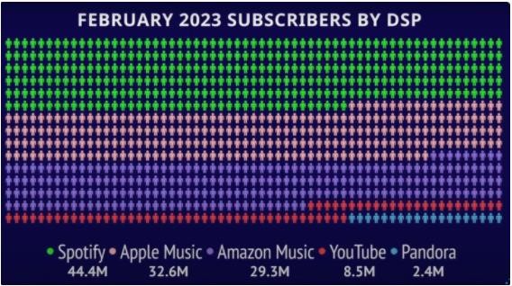 Spotify 是全球最大的音樂(lè )流媒體服務(wù),今年 3 月宣布其全球訂閱用戶(hù)數達到了 2.1 億,其中美國市場(chǎng)占比約為 25%。Spotify 在美國市場(chǎng)上仍然保持著(zhù)領(lǐng)先地位,但 Apple Music 緊追其后。