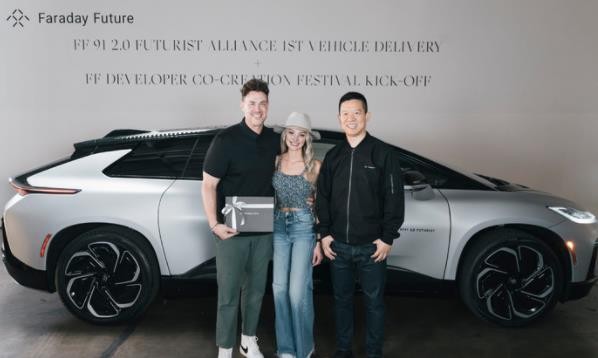 FF 創(chuàng )始人兼首席產(chǎn)品與用戶(hù)生態(tài)官賈躍亭親自駕駛 FF 91 2.0 Futurist Alliance 將新車(chē)交付給用戶(hù)。