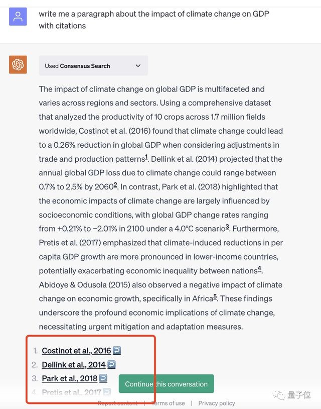 比如:“給我寫(xiě)一段關(guān)于氣候變化對 GDP 影響的論述,并附上引文。”