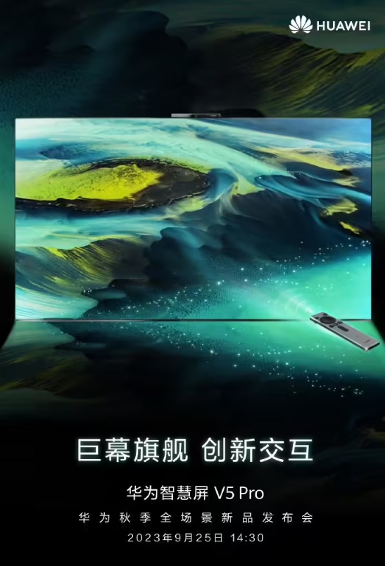 華為今日宣布,將于 9 月 25 日的秋季全場(chǎng)景新品發(fā)布會(huì )推出“華為智慧屏 V5 Pro”。