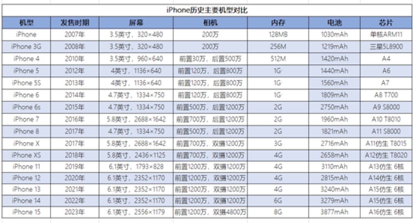 圖:iPhone 歷史主要機型對比