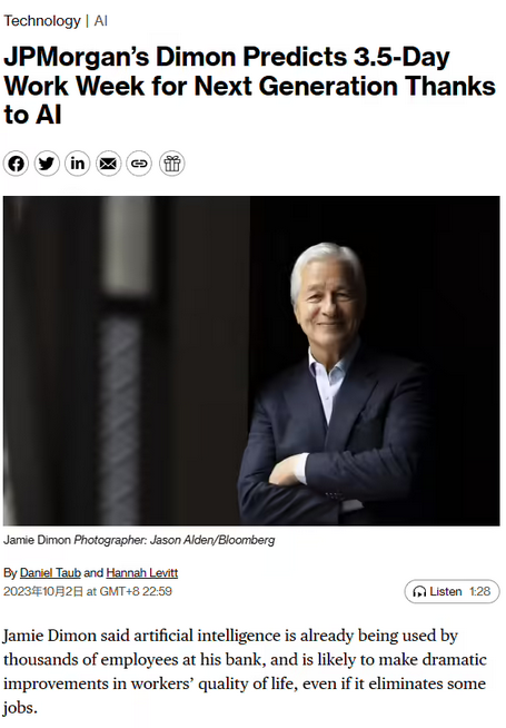 摩根大通 CEO:未來(lái)的人類(lèi)每周僅需工作三天半,且能活到 100 歲
