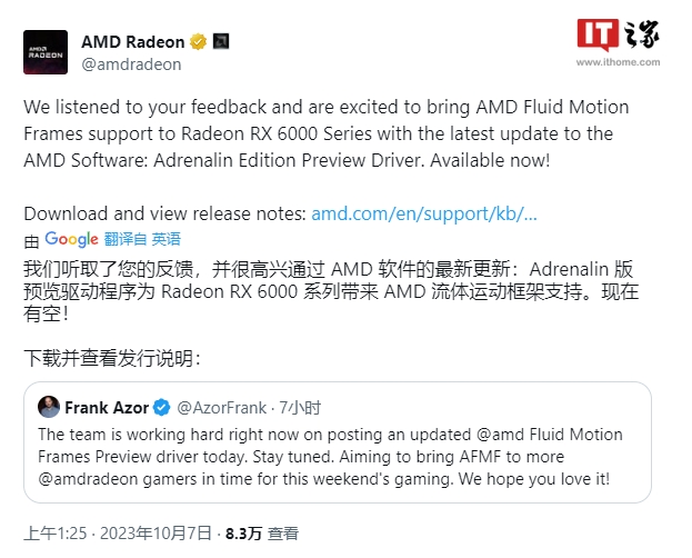 AMD 聽(tīng)取用戶(hù)反饋,為 RX 6000 系列顯卡帶來(lái) AFMF 幀生成技術(shù)支持 09:39:01