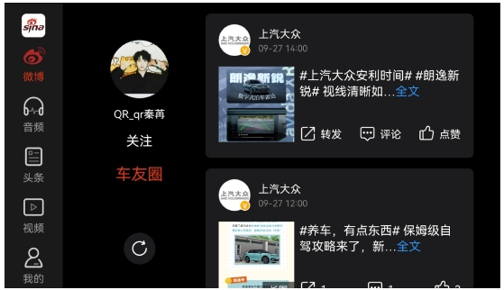 微博車(chē)載APP上線(xiàn)上汽大眾ID家族 短視頻功能首次亮相