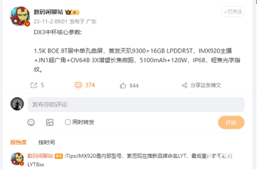 vivo X100標準版配置曝光:搭載1.5K京東方屏幕