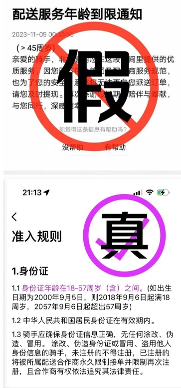 有消息稱(chēng)美團配送服務(wù)人員年齡上限為45周歲,中新經(jīng)緯核實(shí)發(fā)現此為虛假不實(shí)信息。