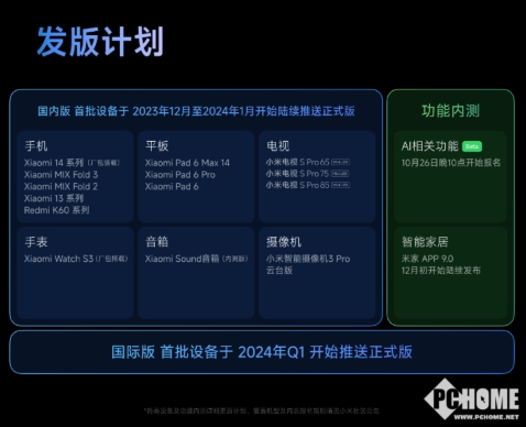 小米澎湃OS開(kāi)發(fā)版首批機型將推送:包括九款手機