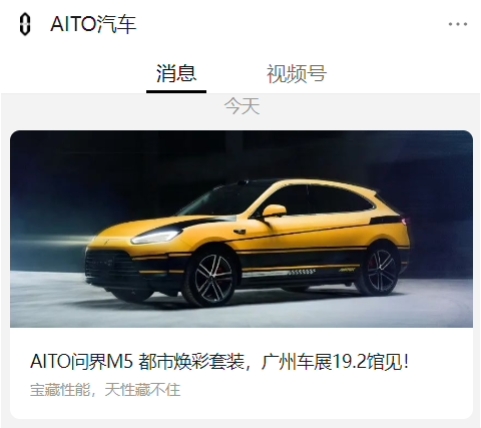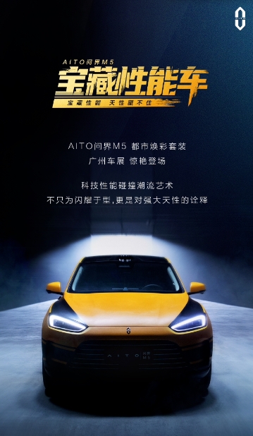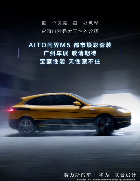 華為和賽力斯聯(lián)合設計的 AITO 問(wèn)界 M5 汽車(chē)今日公布了“都市煥彩套裝”,將于廣州車(chē)展正式發(fā)布。