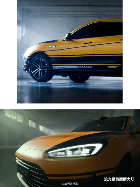 從圖中可以看到,該套裝是汽車(chē)的外觀(guān)配色內容,采用了黃、黑線(xiàn)條和色塊進(jìn)行涂裝,“曙光黃”作為唯一主題色,確實(shí)看起來(lái)更加有動(dòng)感。