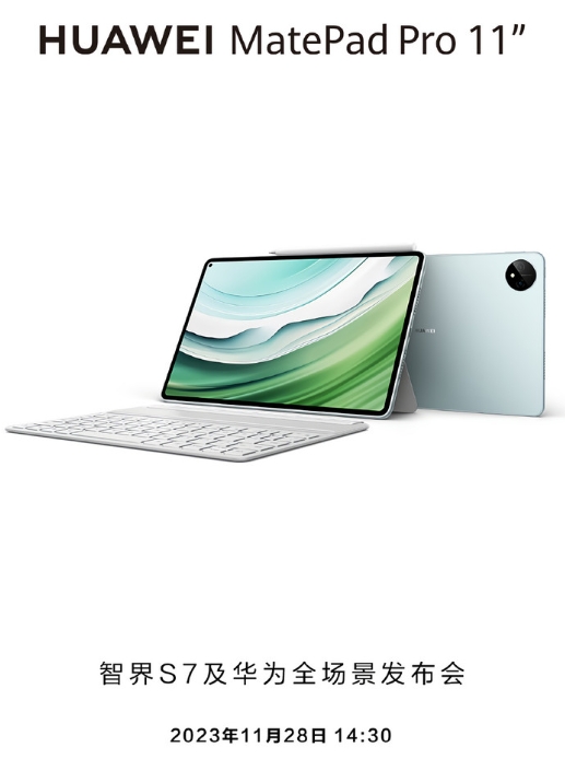 11 月 22 日,華為官方正式宣布,智界 S7 及華為全場(chǎng)景發(fā)布會(huì )將于 11 月 28 日 14:30 舉行,新款 MatePad Pro 11 英寸即將亮相。