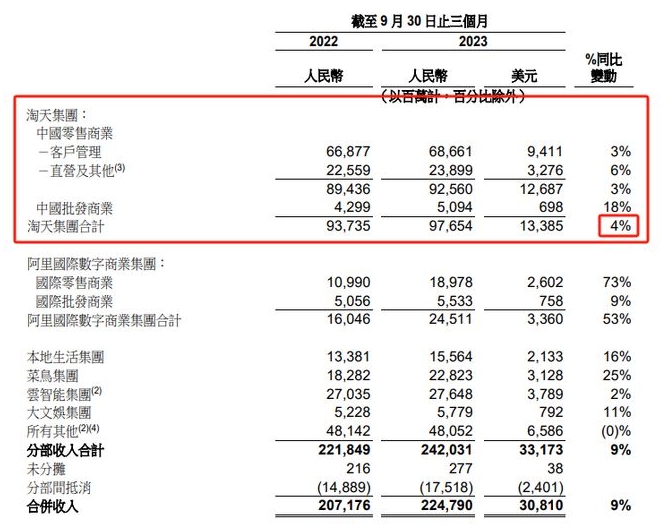 不過(guò),紅星資本局注意到,從同比增速來(lái)看,淘天集團以4% 排在倒數第二,僅優(yōu)于云智能集團,而阿里巴巴集團在最新財報中也披露稱(chēng)不再推進(jìn)云智能集團的完全分拆。