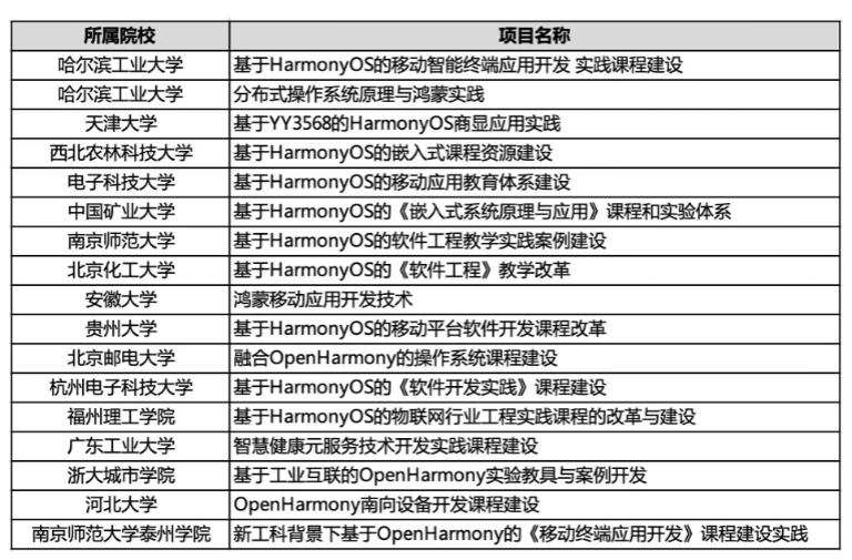 此外,根據華為人才在線(xiàn)官網(wǎng)的最新公示信息,2023 年教育部產(chǎn)學(xué)合作協(xié)同育人項目的華為第二批項目已經(jīng)立項公示,其中包括哈爾濱工業(yè)大學(xué)、天津大學(xué)、電子科技大學(xué)等 16 個(gè)知名高校的鴻蒙項目。在此之前,諸如清華大學(xué)、北京航空航天大學(xué)、武漢大學(xué)等 985 高校已經(jīng)率先開(kāi)設了 HarmonyOS 的相關(guān)課程。