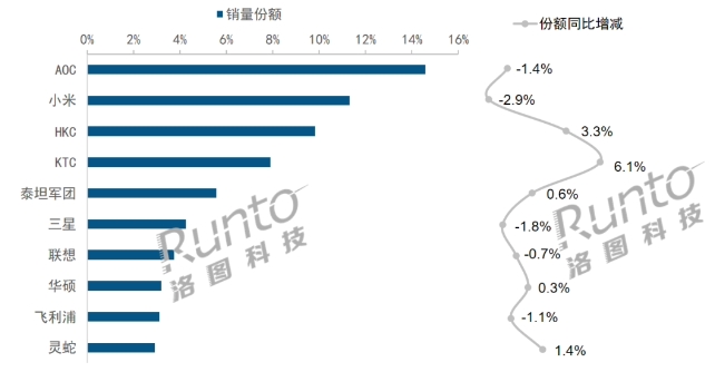 機構:11 月中國大陸顯示器線(xiàn)上銷(xiāo)量創(chuàng )今年新高,AOC / 小米 / HKC 位居前三