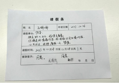 有位米粉在請假事由寫(xiě)道:“朋友的大日子,我得去看看,你滿(mǎn)足我情緒價(jià)值,我回報公司業(yè)績(jì)價(jià)值”。