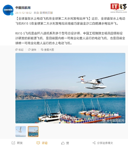 全球首架:國產(chǎn) RX1E-S 水上電動(dòng)飛機在全球第二大水利發(fā)電站開(kāi)飛