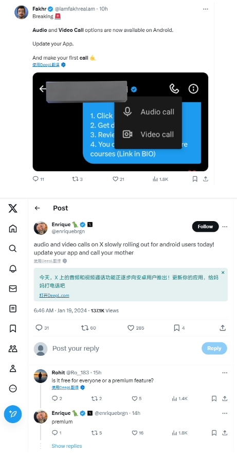 X(推特)安卓版 App 上線(xiàn)音視頻通話(huà):訂閱用戶(hù)才能撥打,但接聽(tīng)免費