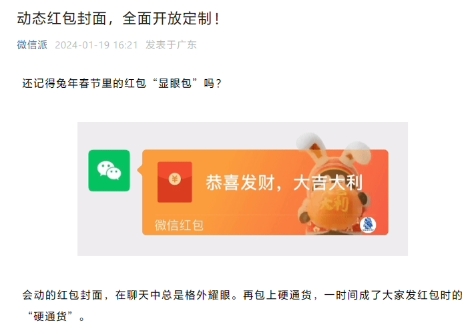 微信動(dòng)態(tài)紅包封面全面開(kāi)放定制,用戶(hù)可制作 1-3 秒封面圖或封面掛件