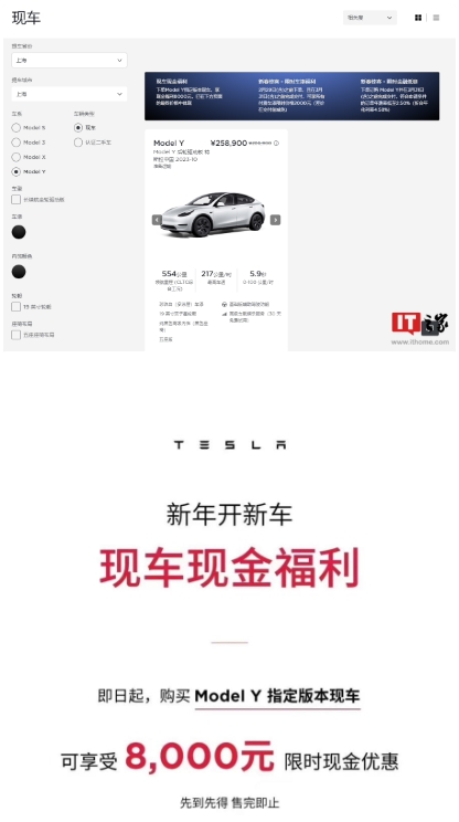 此外,特斯拉官網(wǎng)更新,現推出了“新春驚喜”活動(dòng),購買(mǎi)特定版本 Model Y 現車(chē)可獲得現金優(yōu)惠 8000 元,而且還能花 2000 元選配剛推出的“快銀”等新車(chē)漆。