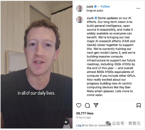 小扎表示,目前Meta內部正在訓練下一代模型Llama 3。