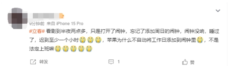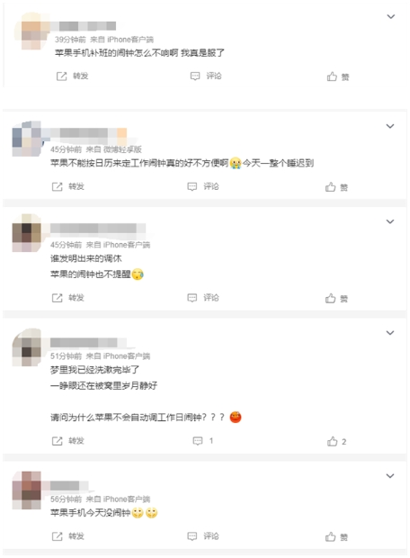 周日春節調休要上班!網(wǎng)友吐槽iPhone鬧鐘沒(méi)響 上班遲到了