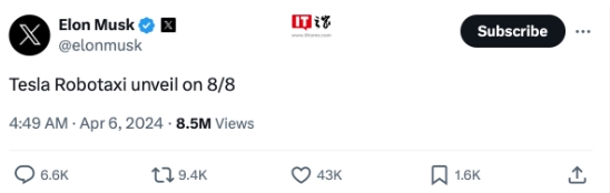 而馬斯克在 X 平臺上發(fā)文聲稱(chēng),特斯拉計劃 8 月 8 日推出相關(guān)“全自動(dòng)駕駛載具”—— 無(wú)人駕駛出租車(chē)(Robotaxi)。