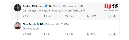 一位特斯拉車(chē)主在社交平臺 X 平臺上詢(xún)問(wèn):“我們能否將 X 集成到特斯拉汽車(chē)中?”特斯拉首席執行官埃隆?馬斯克回應稱(chēng):“即將發(fā)生。”