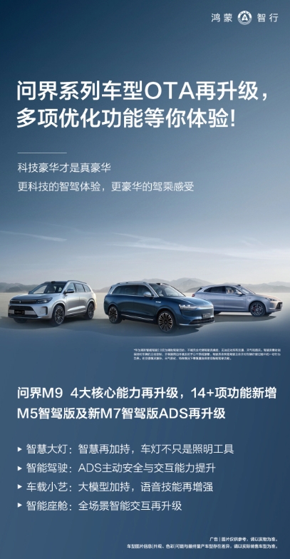 問(wèn)界系列車(chē)型迎 OTA 升級:更聰明的小藝、更優(yōu)秀的 ADS