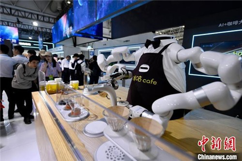 福州5月25日電 (記者 龍敏)先取豆磨豆,再燜蒸沖泡,遞給你一杯咖啡,最后還能清洗杯子……走進(jìn)正在福州舉辦的第七屆數字中國建設峰會(huì )現場(chǎng)展示區,雙臂六軸機器人“AI咖大師”在展位現場(chǎng)服務(wù)著(zhù)八方來(lái)客。展位工作人員夏怡然向中新網(wǎng)記者介紹,機器咖啡師的沖調“手法”對標的是世界咖啡大賽冠軍。