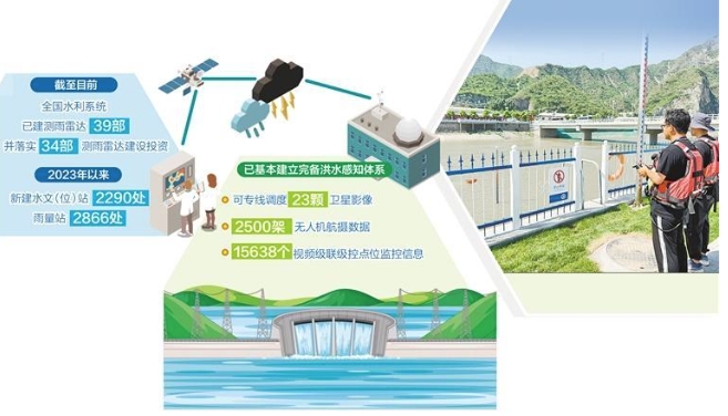 “第二道、第三道防線(xiàn)”分別是指監測“落地雨”的雨量站、監測“河中水”的水文站。“過(guò)去建設綜合性監測預報體系,我們更加側重‘第二道防線(xiàn)、第三道防線(xiàn)’的建設,從2023年開(kāi)始,我們實(shí)現了‘第一道防線(xiàn)’的突破,洪水預報模型邊界輸入由‘落地雨’向‘云中雨’轉變。”水利部水文司副司長(cháng)、一級巡視員劉志雨說(shuō)。