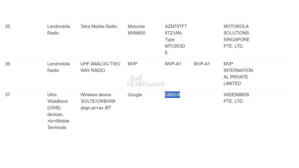 根據認證文件,谷歌 Pixel Watch 3 智能手表型號為 GBDU9,支持超寬帶(UWB)、Wi-Fi 6(abgn,ac+ax)和藍牙。