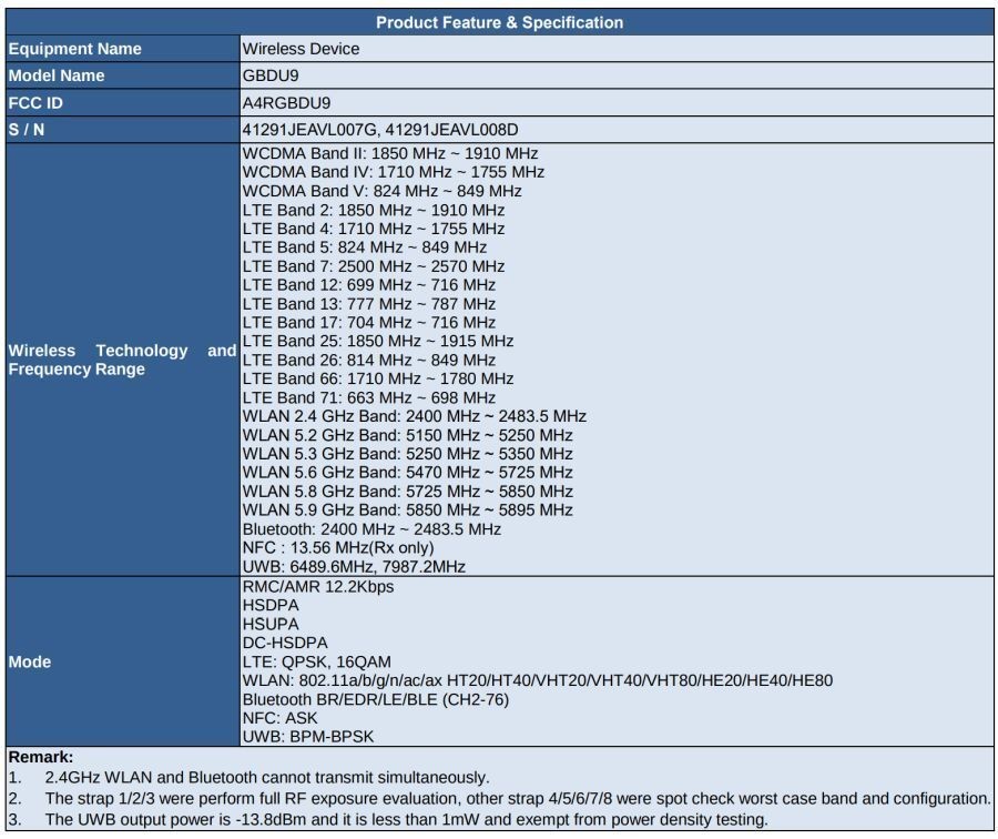 這四個(gè)不同的型號分別是 GBDU9、GG3HH、GRY0E 和 GGE4J。GBDU9 和 GRY0E 支持 LTE 連接,而 GG3HH 和 GGE4J 只支持藍牙和 Wi-Fi。