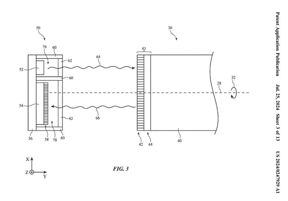 蘋(píng)果的這項專(zhuān)利名為《帶有光學(xué)角度傳感器的電動(dòng)設備》,重點(diǎn)改善折疊設備中的角度傳感器,從而讓系統靈活根據設備狀態(tài)調整 UI。