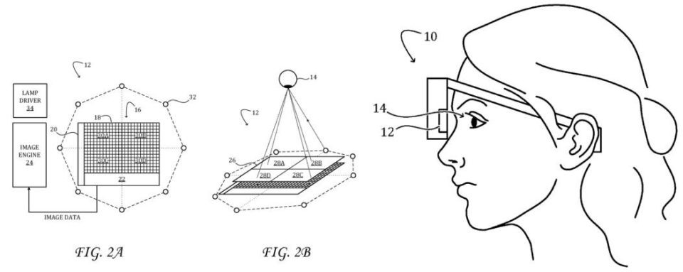 第二項專(zhuān)利涉及一種新的相機系統,通過(guò)燈、透鏡陣列和圖像引擎提升圖像分辨率。放置在圖像傳感器陣列上的透鏡陣列將被攝物體的光線(xiàn)聚焦到傳感器上,從而拍攝出高分辨率圖像。微軟的這一技術(shù)與 Meta 的 Ray-Ban 智能眼鏡類(lèi)似,但旨在獲得更好的效果。