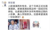 1 月 14 日上午,騰訊新聞《一線(xiàn)》獲悉,滴滴數據科學(xué)部負責人宋世君宣布本月月底正式向滴滴請辭?! ∷硎?,感謝滴滴給我這樣一
